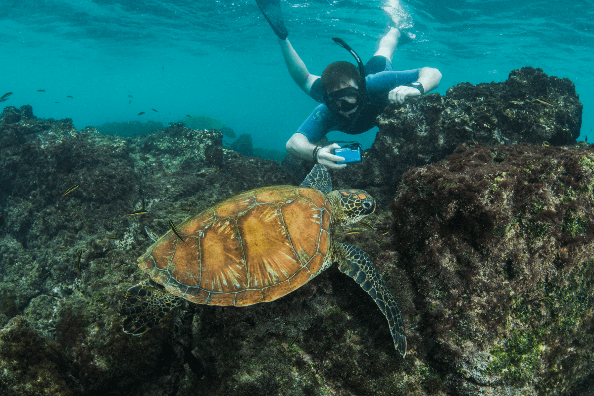 Túneles Cabo Rosa Isla Isabela | Snorkeling Caballitos de Mar, Pingüinos, Tiburones, Rayas Doradas, Tortugas — Tour snorkeling Galápagos en formaciones lava volcánica con avistamiento de caballitos de mar, pingüinos Galápagos, tiburones, rayas doradas y tortugas marinas; buceo Isla Isabela, ecoturismo, fauna marina.