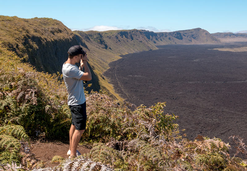 Visita el volcán Sierra Negra en la isla Isabela para contemplar una maravilla natural impresionante. Es el segundo cráter más grande del mundo, con vistas mágicas desde la cima, mostrando el terreno agreste y hermoso. Experimenta el poder y la belleza de la naturaleza, inspirándonos a explorar el mundo en el que vivimos.